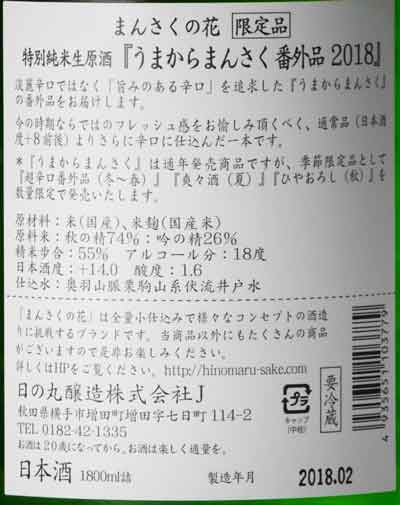 まんさくの花 番外 旨辛口純米生酒 1800ml 日の丸醸造
