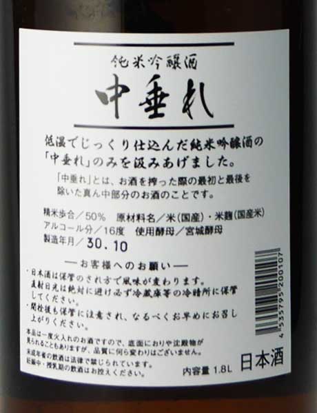 酵母は宮城酵母を使用。低温でじっくり仕込んだ純米吟醸酒の「中垂れ」のみを汲みあげました。