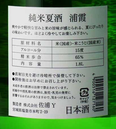 浦霞 純米夏酒 1800ml 佐浦