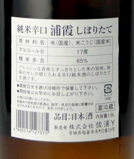 浦霞の人気商品、辛口純米の搾りたて
