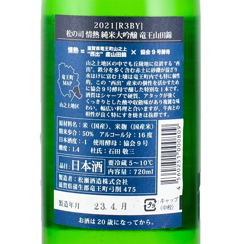 松の司 情熱 純米大吟醸 西出 720ml 松瀬酒造