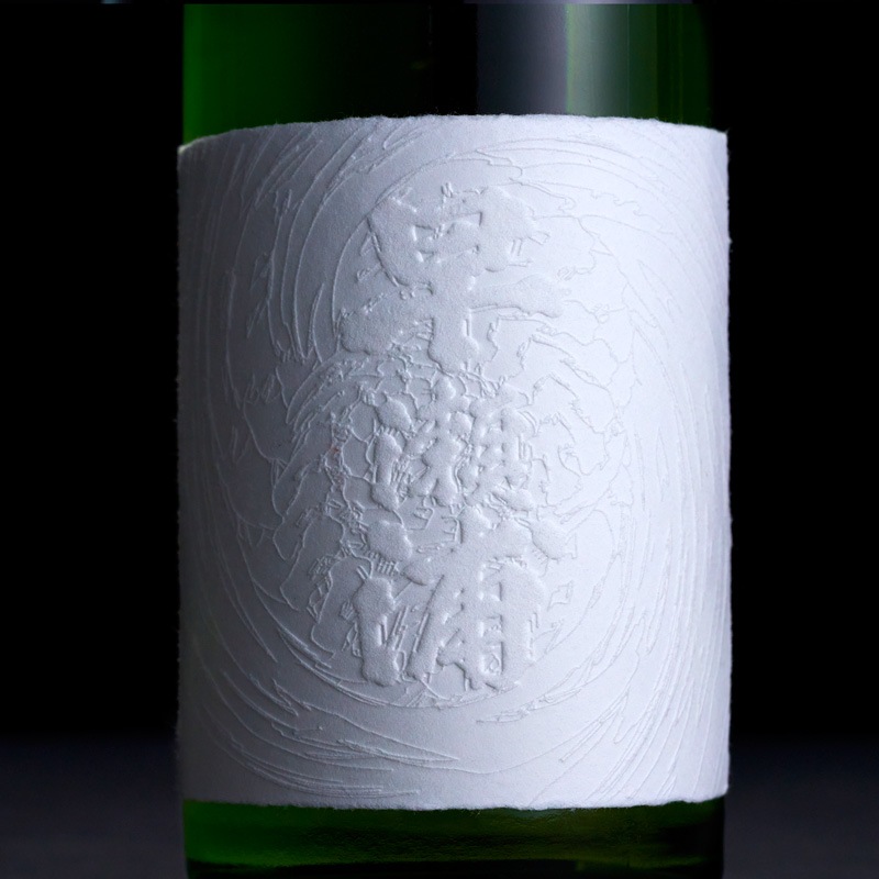 純白の越前和紙に、ブランドの髭文字を凸凹で表現した特殊なラベルを使用しています。