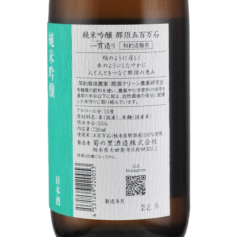 大那 五百万石 純米吟醸 720ml 菊の里酒造