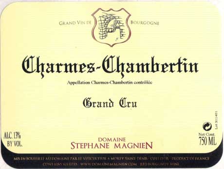 | 原語表記 | Charmes Chambertin Grand Cru 2019 Domaine Stephane Magnien |