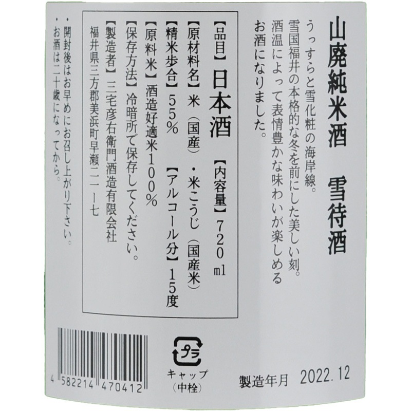 早瀬浦 山廃純米酒 雪待酒 R3BY 720ml 三宅彦右衛門酒造