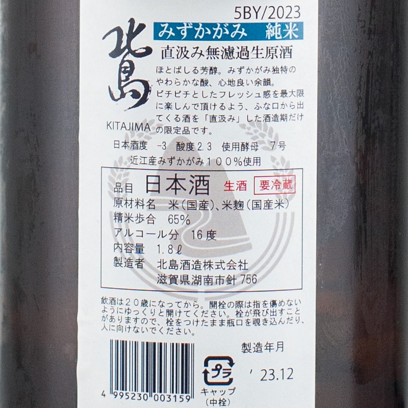 北島の主力米、地元滋賀県産の飯米であるみずかがみを使用したお酒。