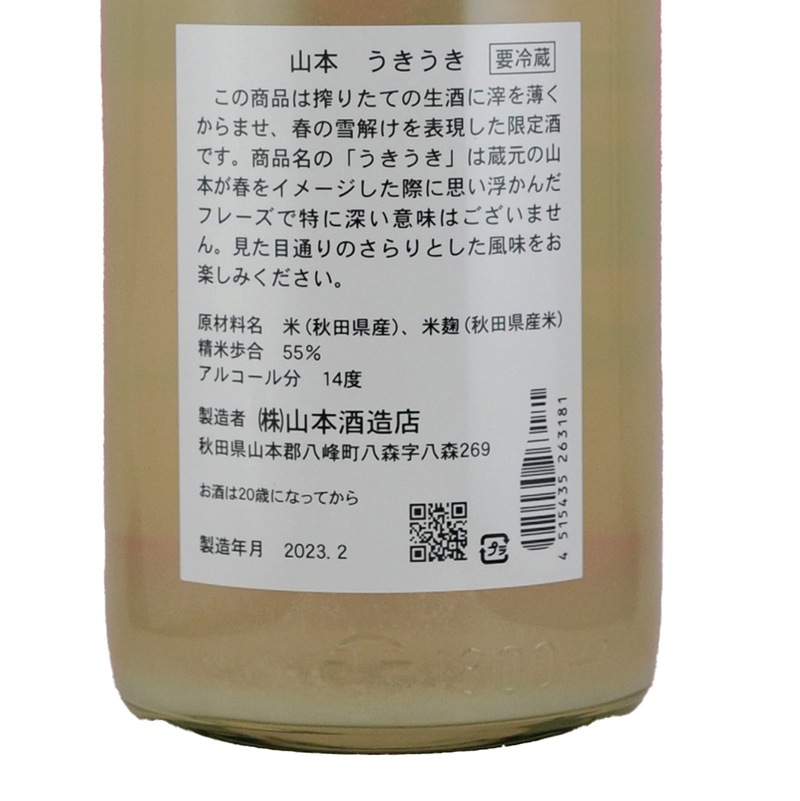 山本 うきうき 純米吟醸 うすにごり生酒 1800ml
