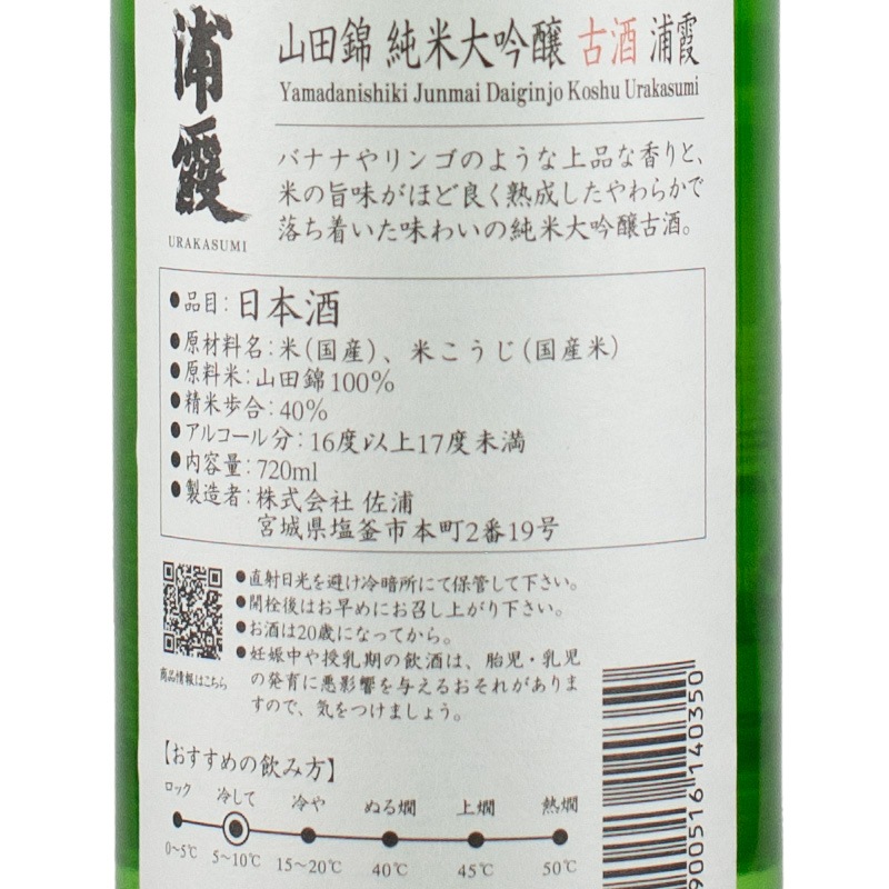 浦霞 山田錦純米大吟醸 古酒 720ml 佐浦
