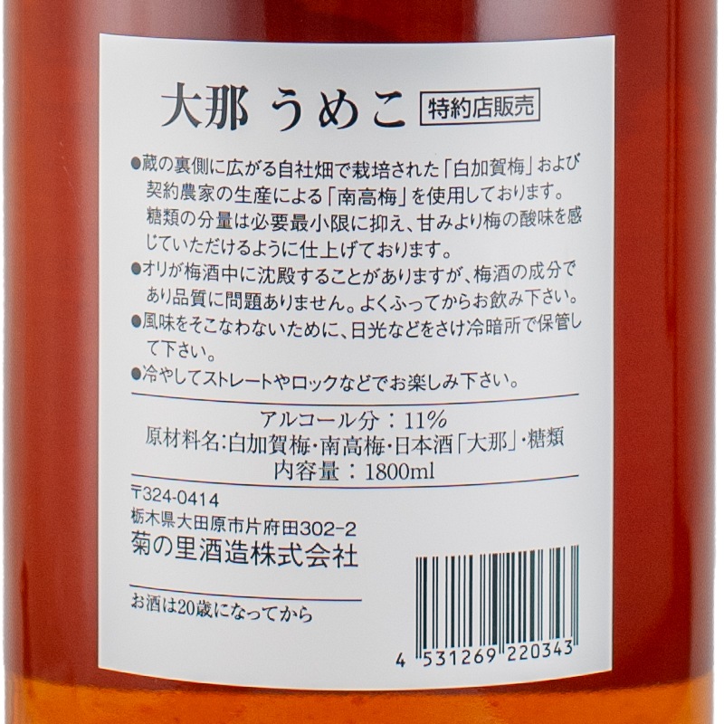 大那 うめこ 1800ml 菊の里酒造