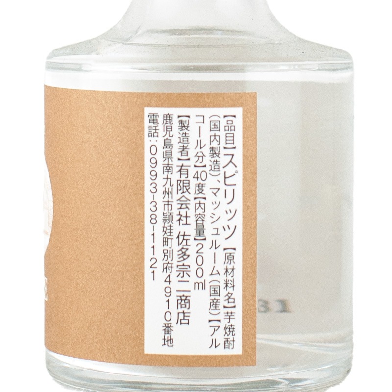 | 原料 | 芋焼酎(国内製造)、マッシュルーム(国産) |