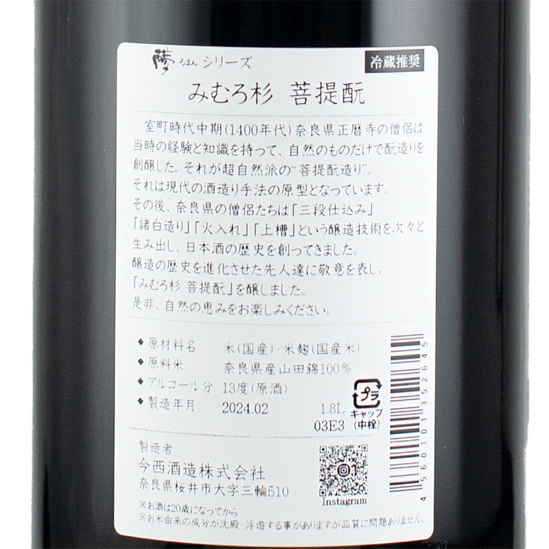 菩提もとの入門編として最適な1本で、今西酒造の哲学が凝縮された「木桶菩提もと」への橋渡し的な存在になってくれそうな商品です。