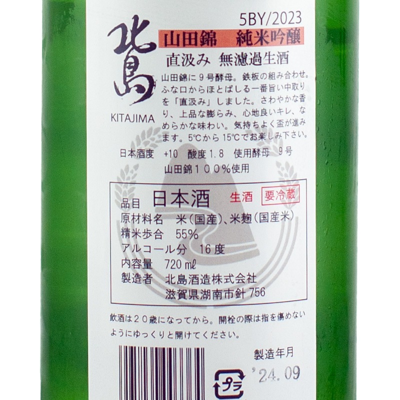 北島 山田錦 純米吟醸 直汲み 無ろ過生酒 720ml 北島酒造