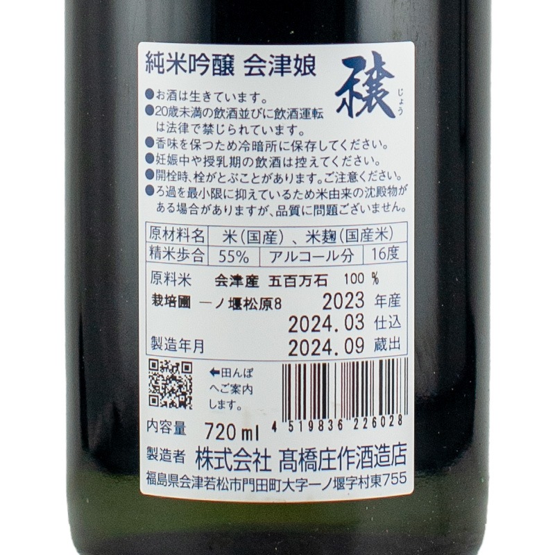 会津娘 「穣」 松原8 純米吟醸 720ml 高橋庄作酒造