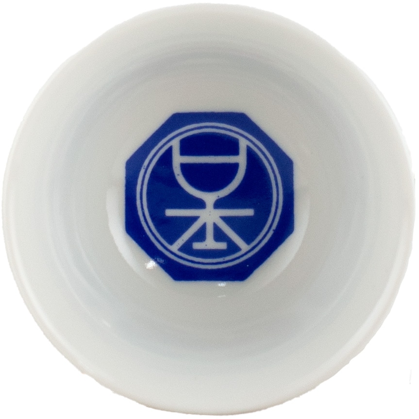 『日本葡萄館ききちょこ』は、器の半分から7分目程度にお酒を注いでいただくことで、底の白とコバルトの「蛇の目模様」で色合いや透明度を確認でき、更に、旨みや香りも余すことなくお楽しみいただける猪口となっております。