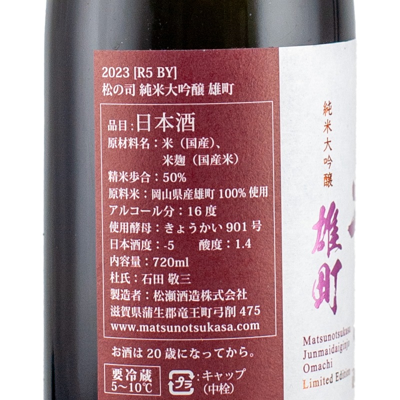 松の司 純米大吟醸 雄町 720ml 松瀬酒造