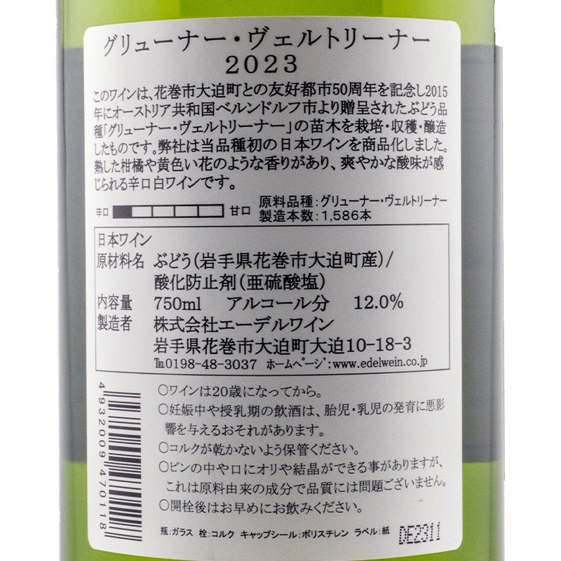 グリューナー・ヴェルトリーナー 2023 エーデルワイン 720ml