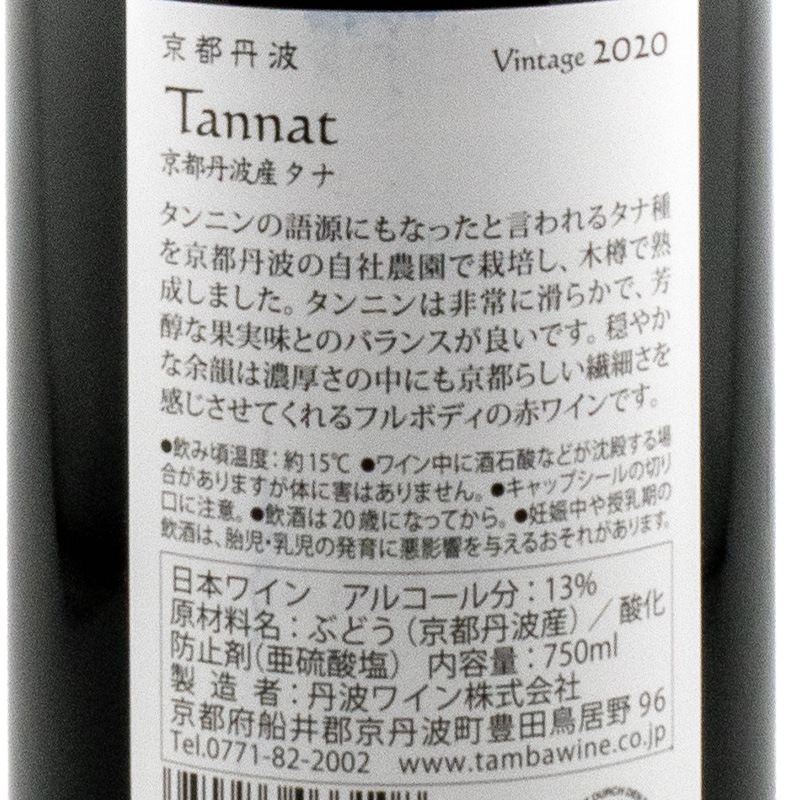 京都丹波タナ 2020 丹波ワイン 750ml