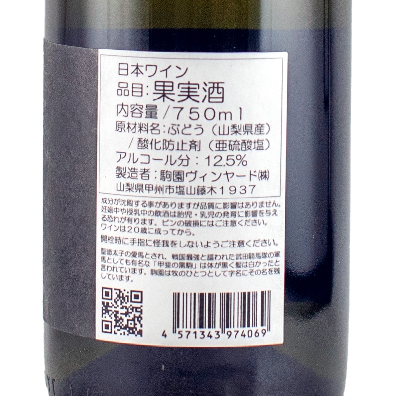 「駒園」とは創業前からの甲州ぶどうを栽培している自社園の字名で、現在でも推定樹齢80年を超える甲州古木が残されています。