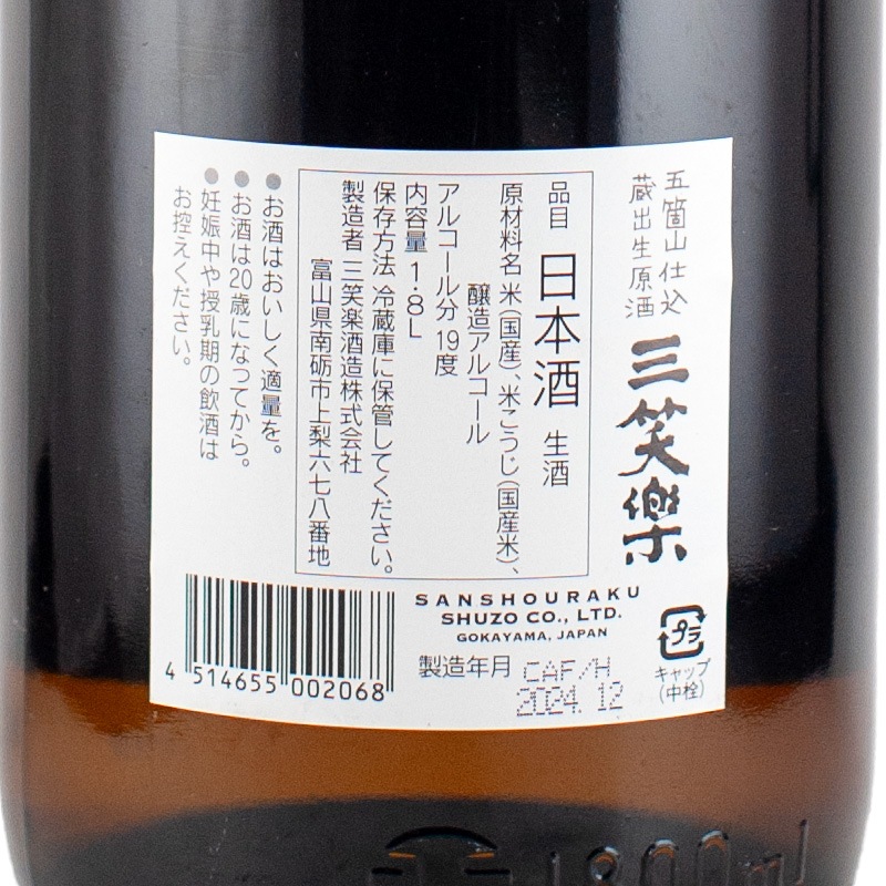 三笑楽 蔵出生原酒 本醸造 1800ml 三笑楽酒造