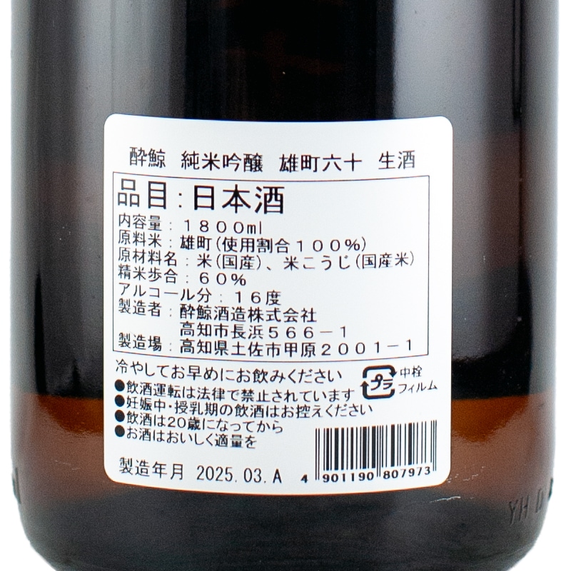 酔鯨 純米吟醸 雄町六十 生酒 1800ml 酔鯨酒造