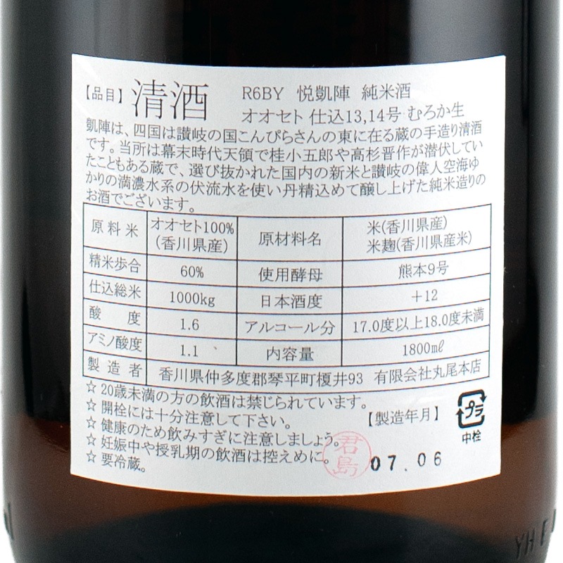 悦凱陣 純米酒 オオセト 無ろ過生原酒 R6BY 1800ml 丸尾本店