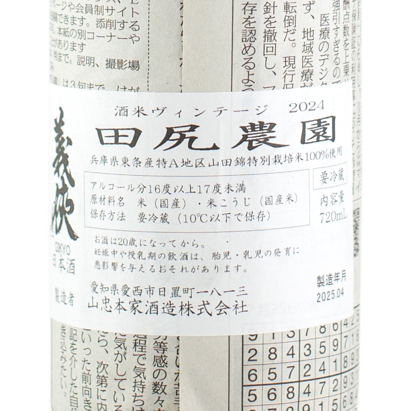 義侠 純米 田尻農園特米 2024BY 火入 720ml 山忠本家酒造