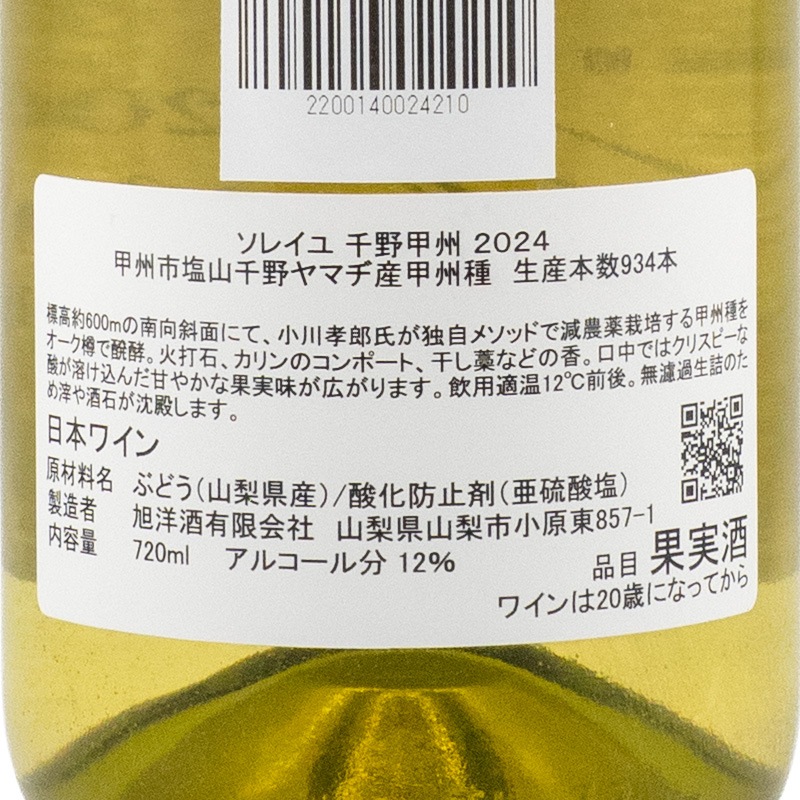 ソレイユ 千野甲州 2024 旭洋酒 720ml