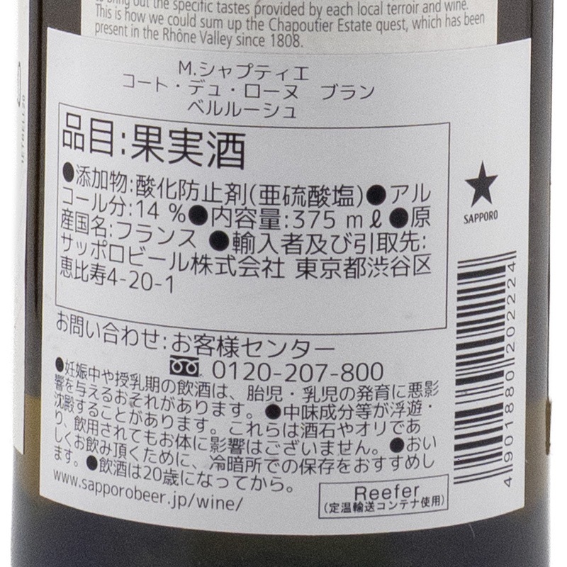 コート・デュ・ローヌ ブラン ベルルーシュ M.シャプティエ 375ml(ハーフ)