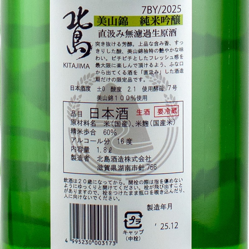 北島 美山錦 純米吟醸 無濾過生原酒 直汲み 1800ml 北島酒造
