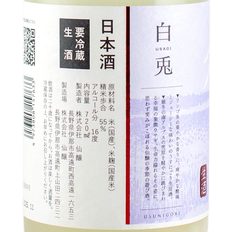 黒松仙醸 純米吟醸 うすにごり生原酒 白兎(ウサギ) 720ml 仙醸