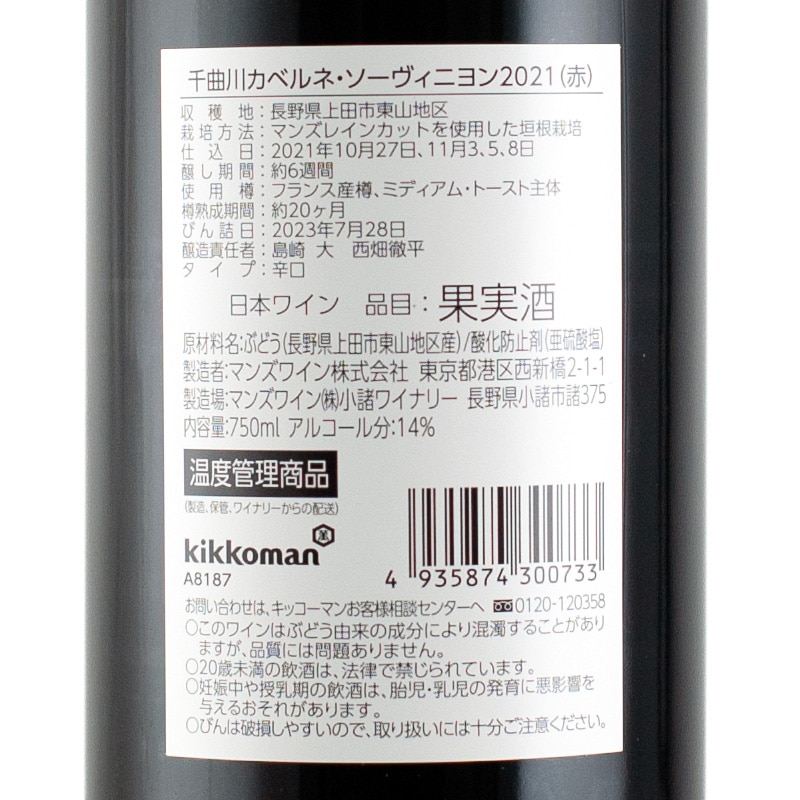 ソラリス 千曲川 カベルネ・ソーヴィニヨン 2021 マンズワイン 750ml