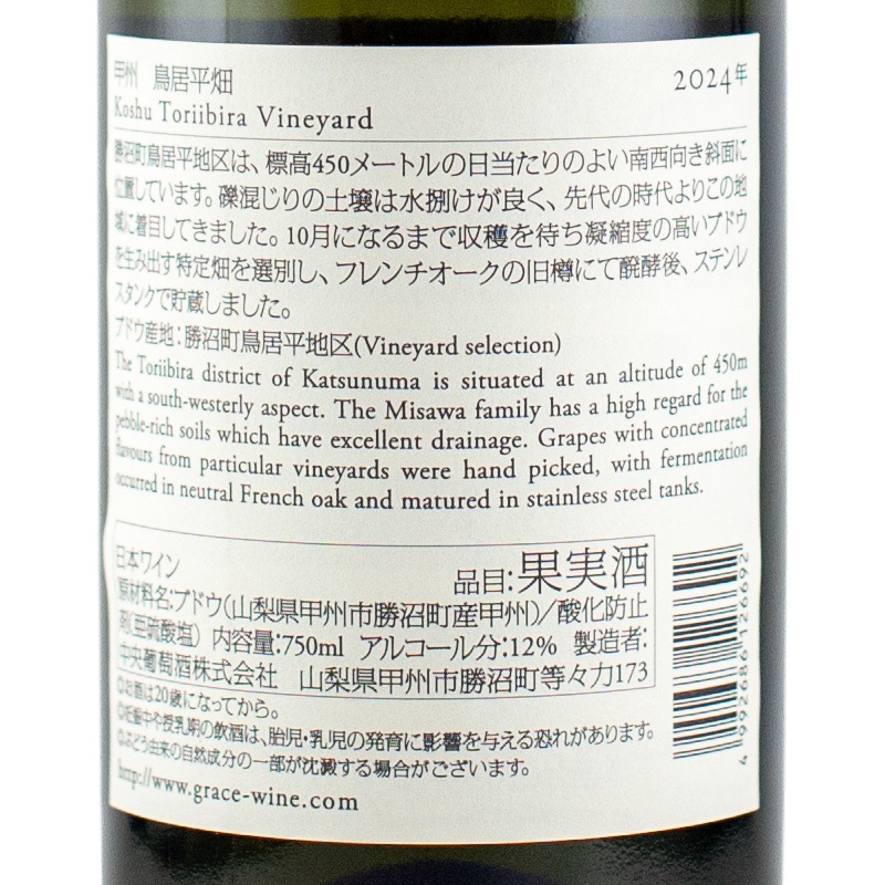 グレイス 甲州 鳥居平畑 2024 中央葡萄酒 750ml