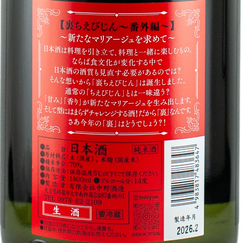 日本酒度、酸度、味わいが非公開の裏ちえびじん。どんな味か、ぜひ飲んでお確かめください!