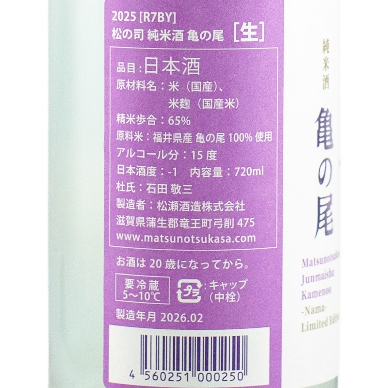 松の司 純米 亀の尾 720ml 松瀬酒造