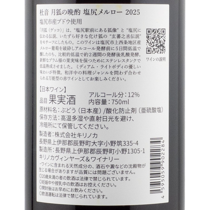 杜音 月狐の晩酌 塩尻メルロ 2025 キリノカ 750ml