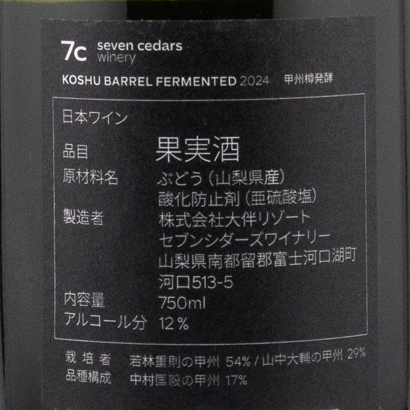 甲州樽発酵 2024 セブンシダーズワイナリー 750ml