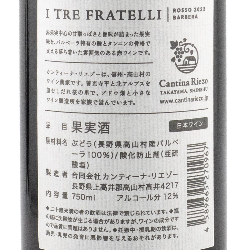 | 原語表記 | バルベーラ イ トレ フラテッリ 2022 |