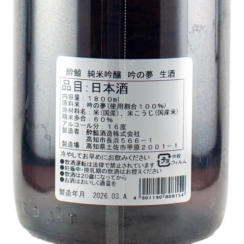 酔鯨 純米吟醸 吟の夢 生酒 1800ml 酔鯨酒造